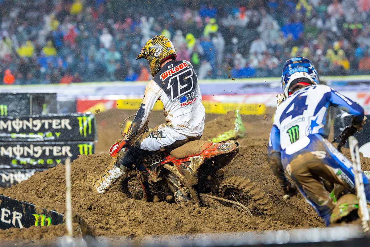 In the main event, starts and visibility proved critical in the challenging conditions. The Quad Lock Honda riders rose to the occasion.